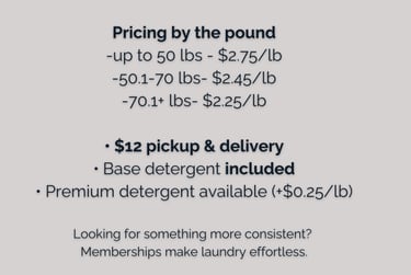 I pick up your laundry, wash and fold it with care, and deliver it back fresh - giving you back time, sanity, and breathing room.